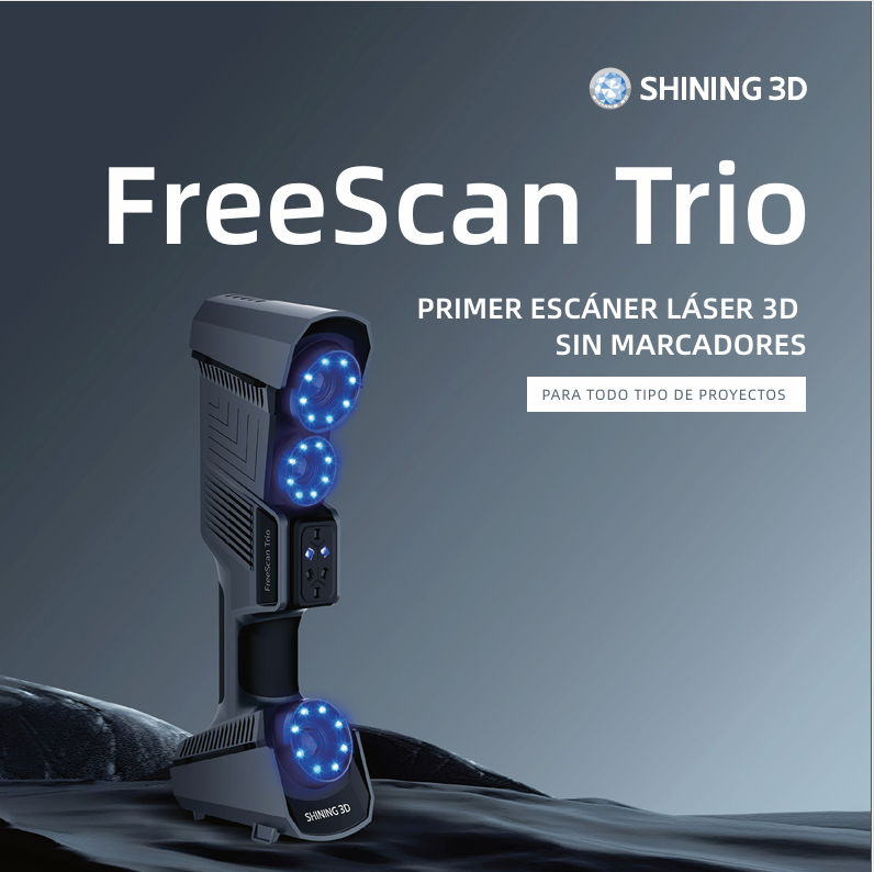 ESCÁNER LÁSER 3D PORTÁTIL CON TRIPLE CÁMARA VELOCIDAD Y EFICIENCIA REDEFINIDAS El FreeScan Trio ofrece ahora la máxima velocidad y eficiencia gracias a su modo láser de 98 líneas que permiten escanear sin marcadores. Además, es capaz de capturar hasta 3.010.000 puntos/s. Menos preparación, más eficiencia. Gracias a las 3 cámaras industriales de 5 megapíxeles cada una, FreeScan Trio captura hasta el detalle más minucioso y proporciona datos 3D de alta calidad. EXACTITUD IMPLACABLE Mediante el uso de los modos de escaneo con marcadores y sin marcadores, FreeScan Trio ofrece resultados de alta precisión con una exactitud de hasta 0,02 mm. ESCÁNER 3D TODO EN UNO El escáner más versátil: sus 4 modos de escaneo y la fotogrametría integrada convierten al FreeScan Trio en el aliado perfecto para cualquier escenario.